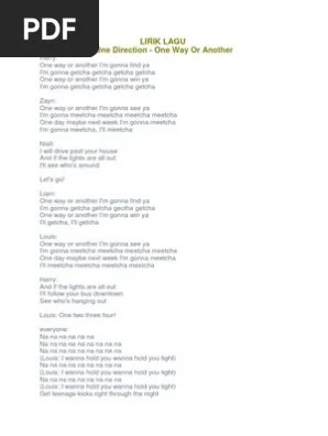 zayn oh, i just wanna take you anywhere that you like. Lirik lagu one way or another (x factor indonesia). One way or another satu arah atau lainnya. One way or another i'm gonna find ya. Lirik lagu one direction one way or another untuk belajar bahasa inggris.
